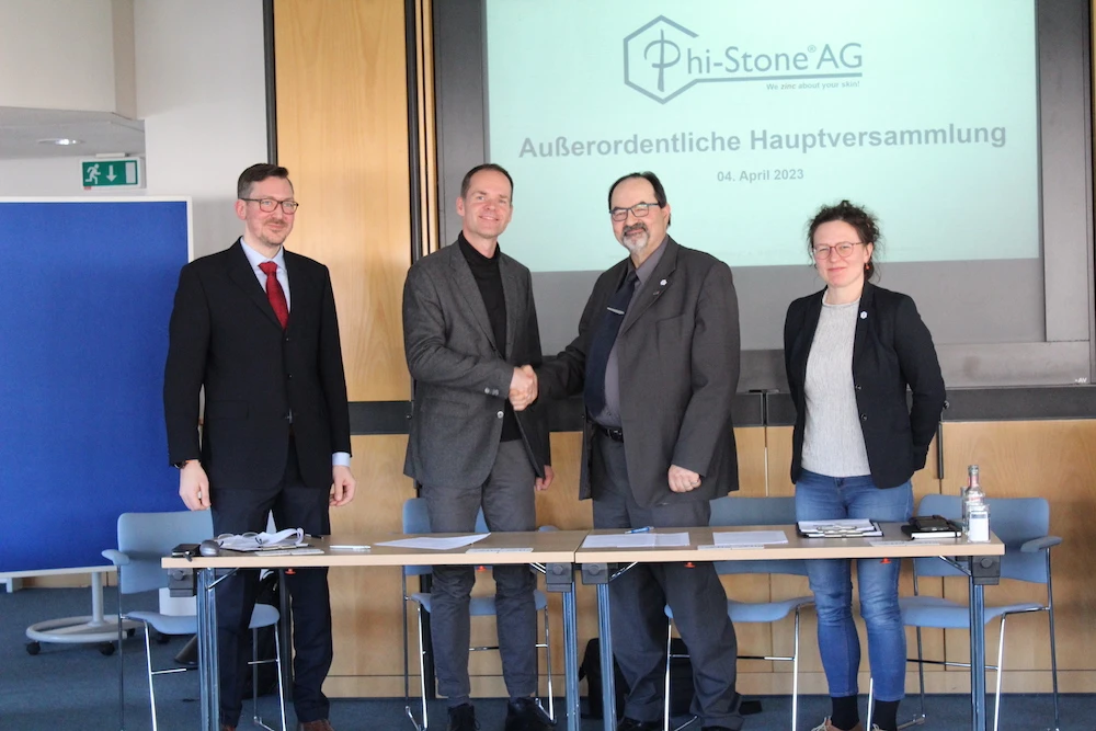 Am 4. April 2023 fand die außerordentliche Hauptversammlung der Aktionäre der Phi-Stone AG statt. Die bestehenden Aktionäre haben mit überwältigender Mehrheit der Barkapitalerhöhung zugestimmt, so dass neue Investoren zeichnen konnten. Durch den Ankerinvestor und weitere Investoren wurde ein 7-stelliger Betrag eingeworben. Damit konnte der favorisierte Weg mit einem strategischen Investor aus Deutschland erfolgreich beschritten werden. Verschiedene Förderinstitute, wie die Mittelständische Beteiligungsgesellschaft (MBG) aus Schleswig-Holstein, waren bei der Kapitalbeschaffung sehr hilfreich.