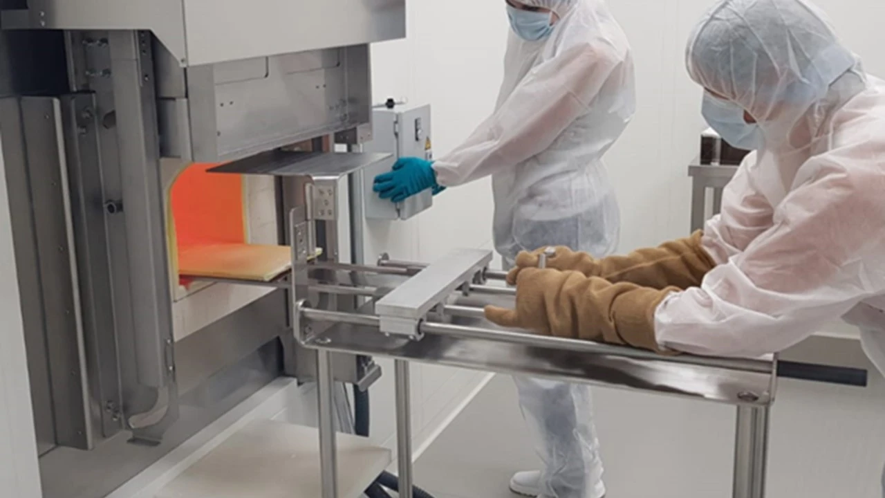 Mitarbeiter von Phi-Stone bei der Herstellung des tetrapodalen Zinkoxids (t-ZnO) an einem Brennofen.