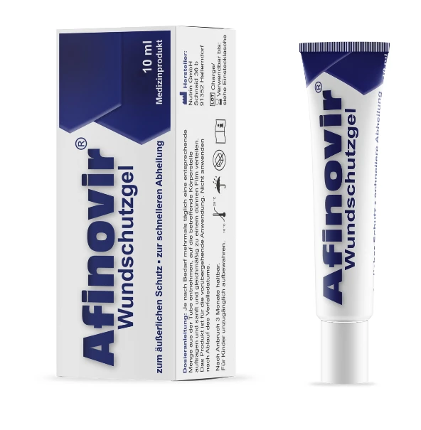 Afinovir® Wundschutzgel von Phi-Stone dient der Abdeckung zum äußerlichen Schutz vor z.B. Herpesviren, sowie der schnelleren Abheilung von Wunden, leichten Verbrennungen und Sonnenbrand.