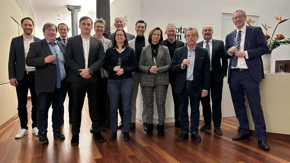 Beim Abschluss gab es viele zufriedene Gesichter: Brenner (HWB), Elsner (R&K), Dr. Helms (Notar), Peizert (R&K), Dr. Meschede (R&K), Ernest (R&K), von Majewsky (HWB), Dr. Bergschneider (BWK), Müller (BWK), Kock (R&K), Rüßel (R&K), von Knobelsdorff (Rechtsanwalt R&K, Kanzlei Raschke von Knobelsdorff Heiser), Dr. Schneider (Rechtsanwalt BWK, ARQIS Rechtsanwälte)