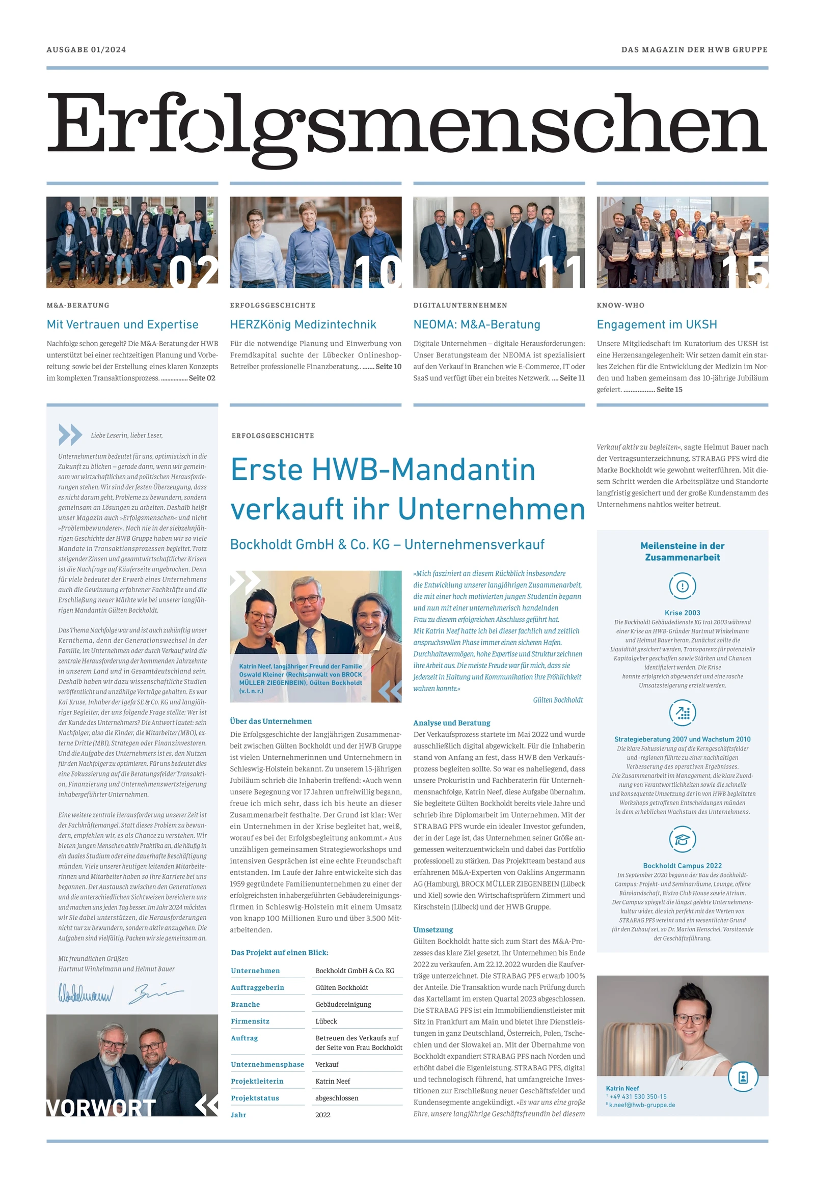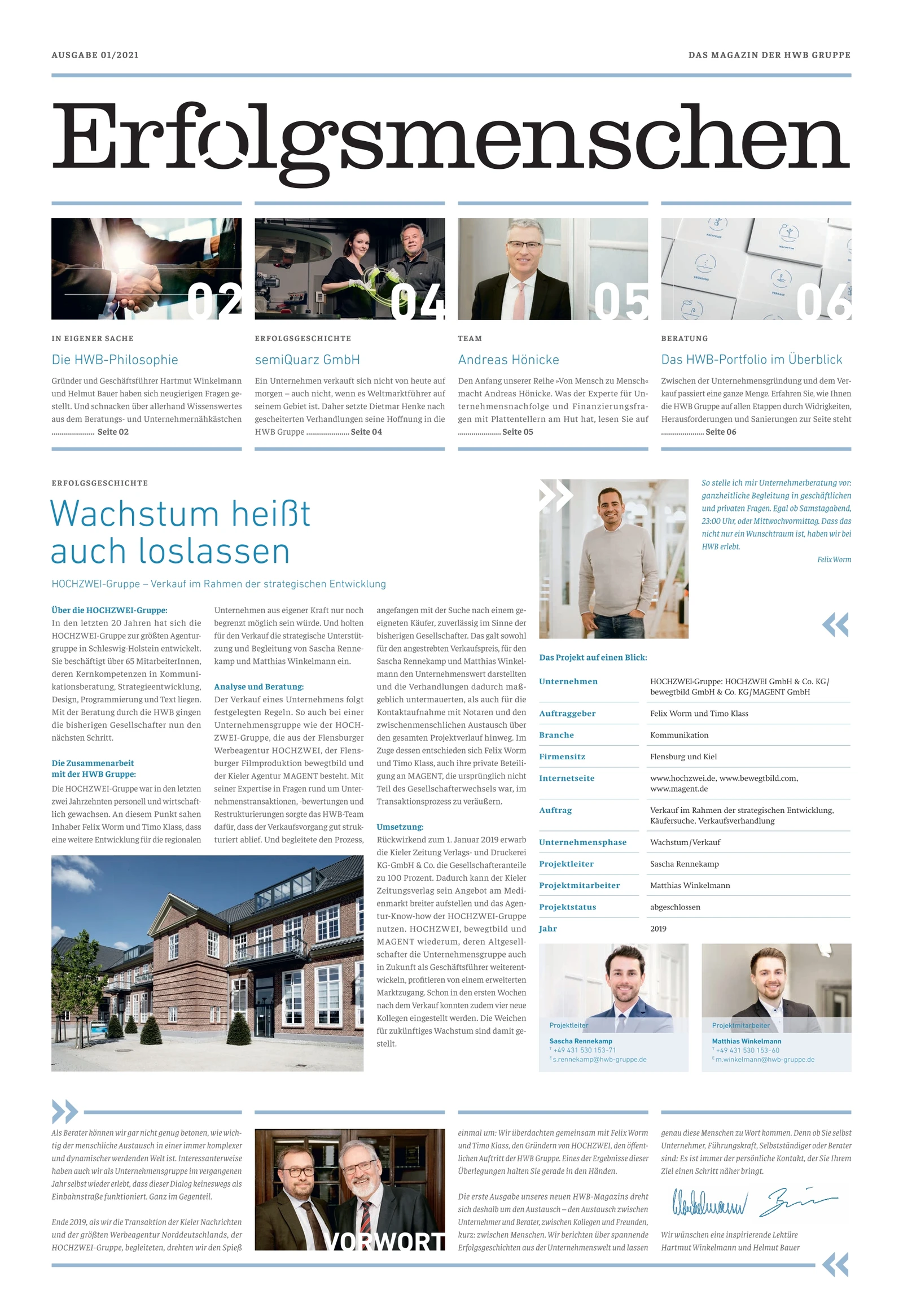 Dass Erfolg von Menschen gemacht wird, erleben wir in der Unternehmerberatung tagtäglich. Ausgewählte Geschichten genau dieser Menschen und ihrer Unternehmen erzählen wir in unserer aktuellen Ausgabe von „Erfolgsmenschen“.